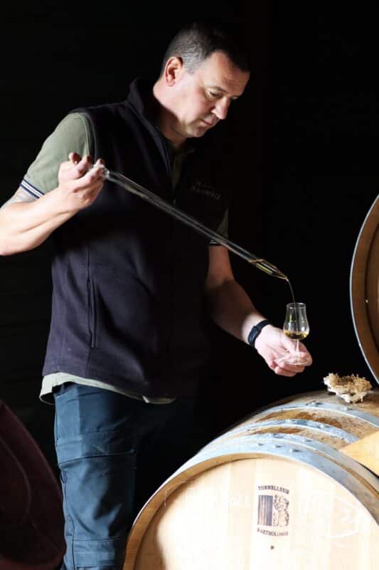 À la sortie de l’alambic, les eaux-de-vie sont cristallines, intenses, déjà expressives, titrant autour de 60 % vol. C’est la Blanche d’Armagnac.